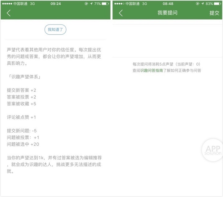 识趣中还有自己的声望体系,这代表着其他用户对你的信任度,每次提出优秀的问题或答案,都会让你的声望增加,从而更具影响力。