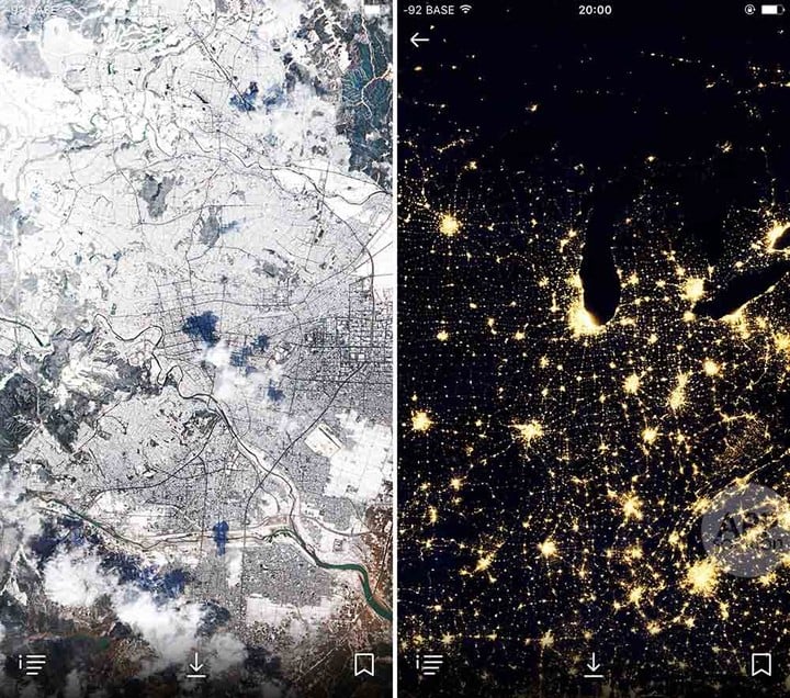 随后两个专题分别为「伪色」和「人类」,需要内购才能解锁。前者展示了人眼无法识别的伪色波浪卫星图,后者主要跟踪再现人类对地球面貌的改变。