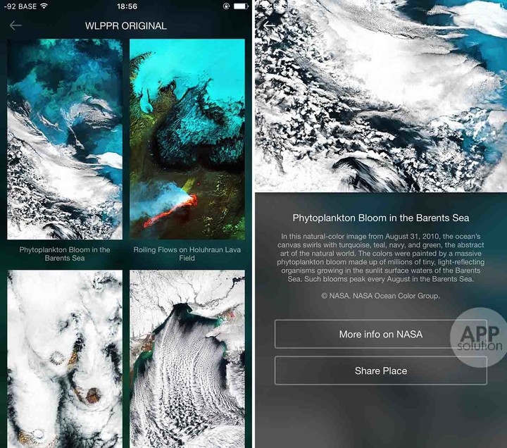 WLPPR 是一个高清卫星图像壁纸应用,素材来自 ESA(欧洲太空局)、NASA(美国国家航空航天局)、Yandex(俄罗斯地图搜索引擎)。
