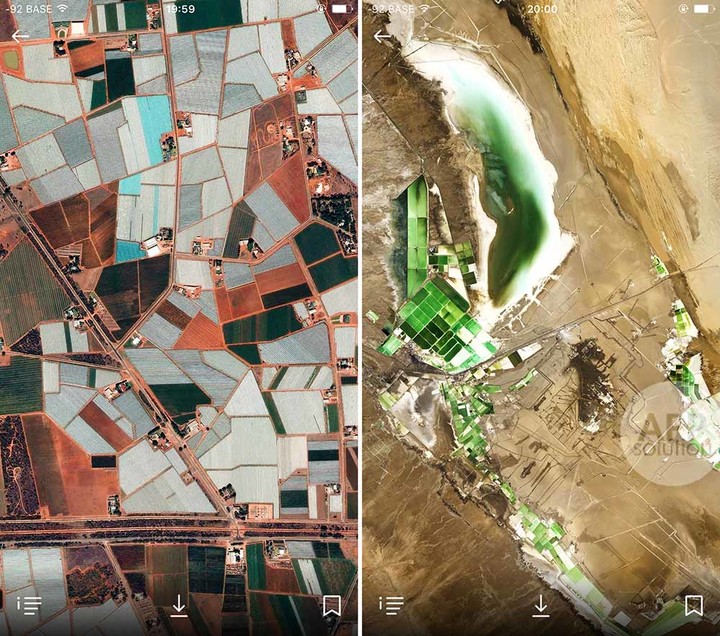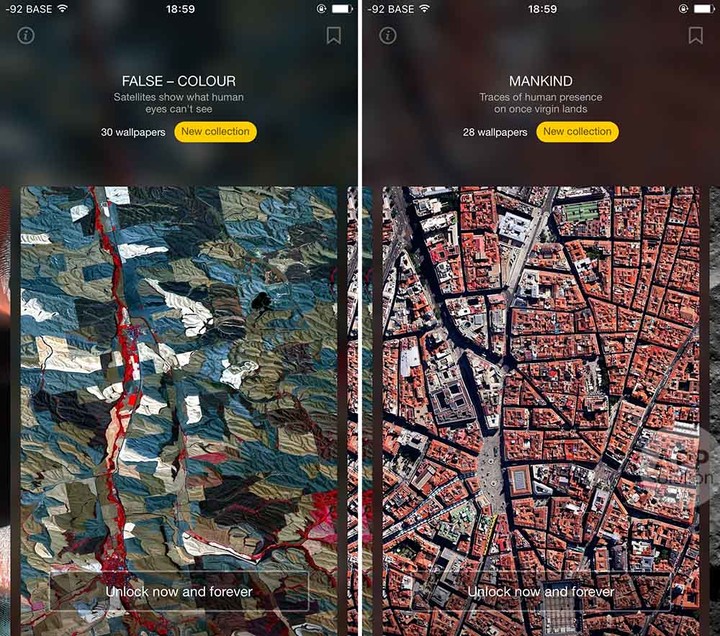 随后两个专题分别为「伪色」和「人类」,需要内购才能解锁。前者展示了人眼无法识别的伪色波浪卫星图,后者主要跟踪再现人类对地球面貌的改变。