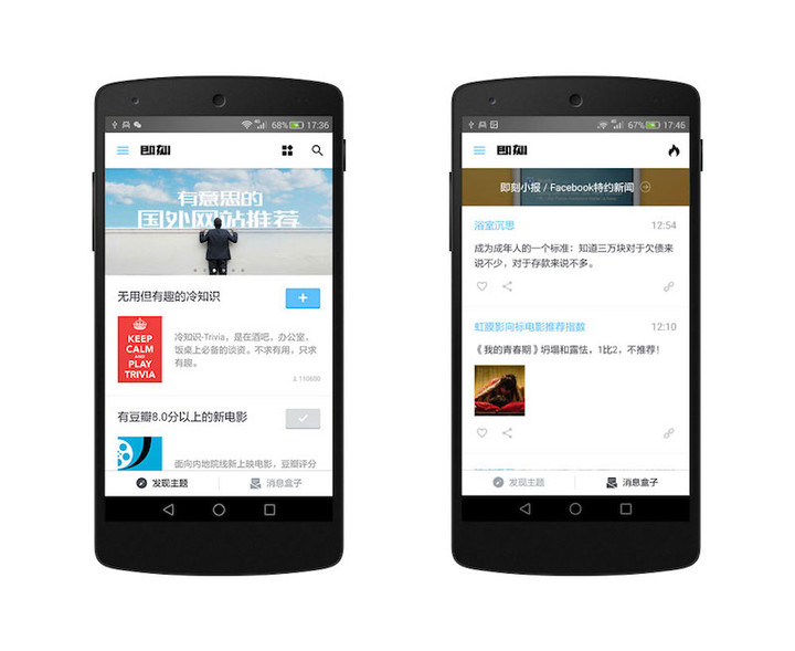 「即刻」基于这种信息组织方式提供了个性化的资讯定制与推送服务。机器抓取信息加人工审核,有新消息第一时间推送通知,用户在锁屏界面即可高效省心地看到感兴趣的消息。