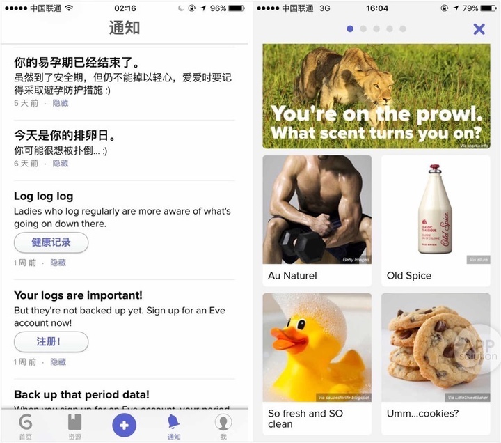除了记录生理周期,「资源」中的安全课堂还能帮助用户更了解大姨妈和相关知识,如果英文过硬的话,英文版的 Eve 在第二个 Column 内置了一个大姨妈社区,你可以在这里跟其他用户一起讨论大姨妈的相关知识。