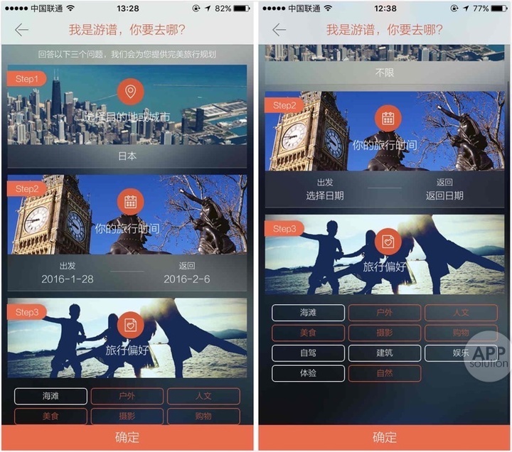 首次打开游谱旅行,你只需要回答它三个问题——想去哪里?玩儿多长时间?想要一段怎样的旅程?在这里,你可以为你的旅行添加标签(Tag)是喜欢自然?还是喜欢人文?是走到哪儿拍到哪儿,还是走到哪儿买到哪儿?每个人都有一个不一样的旅行主题,凭什么跟别人看一样的攻略?