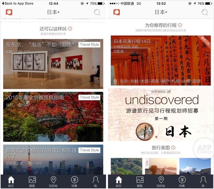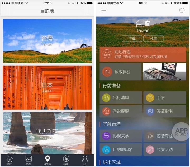 一旦确定了你的旅行目标,你的首页就开始了个性化的定制,与你的旅行目标匹配度很高的行程规划、旅行美图、特色玩儿法和特惠商品都会在这里呈现。值得注意的是,这些精彩内容的背后是前 Lonely Planet 的内容团队在跟进,品控可以说相当有保证。