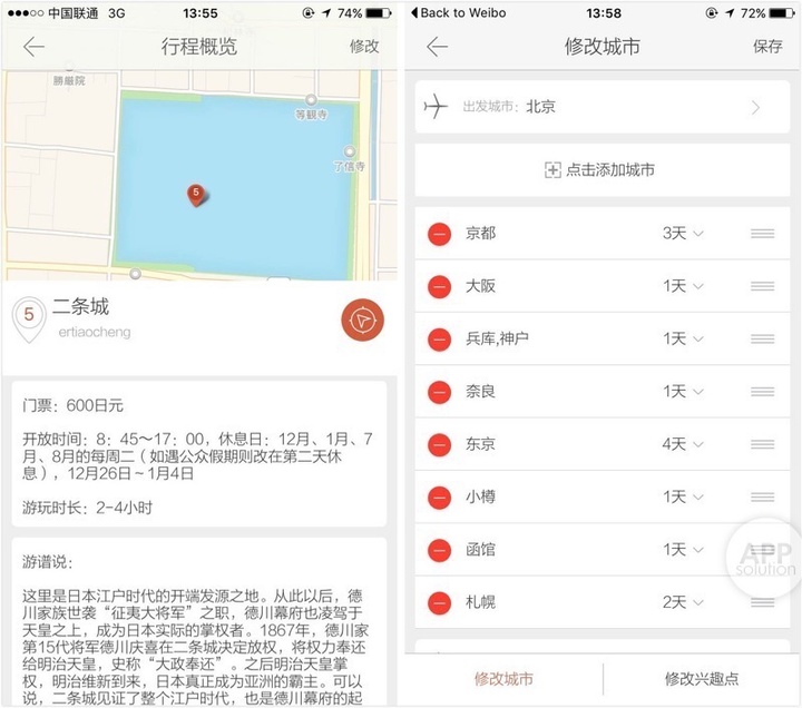 作为一款个性化的旅行 App,你当然可以修改这些行程。你可以任意改变或删减城市和兴趣点,还可以自定义每个城市的游玩天数,你的行程也会随之修改,总之,想怎么改就怎么改。