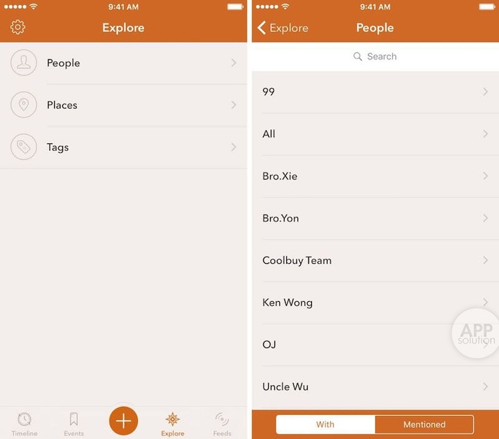 Momento 的搜索功能贯穿整个功能设计中,你在 Timeline、Events 和 Explore 中都可以使用搜索功能,关键词标签的作用在这里也更加凸显。