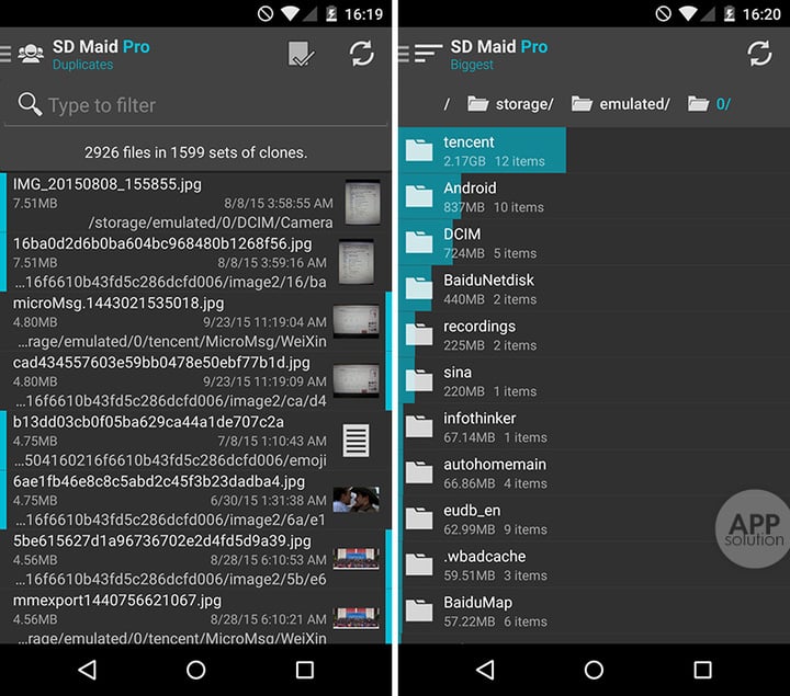 自 2011 年登录 Android 以来 SD Maid 收获好评无数,如果你需要一款轻便而又有效的清理工具,这会是一个很好的选择。软件缓存清理和 Duplicates 这两个功能免费版本仅支持扫描,清理功能需要付费解锁。