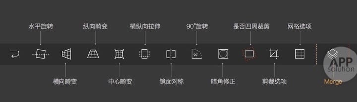 2. 避免出现「第二次畸变」。有时候对一张图片调整过纵向畸变后,再进行横向调整,之前已经竖直的物体便又会出现歪斜。而在第一次调整完毕时,点击 Merge 再实施下一步调整便可以完美解决这一问题。