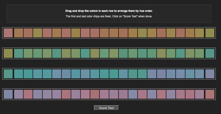 如果你曾接受过著名的 Farnsworth-Munsell 视觉色域检测1 ,你会发现我们的大脑对颜色模式的匹配精确度是差到不行的。更糟糕的是,随着年龄的增长,大脑对颜色感知能力还会下降,这是令人十分沮丧的。