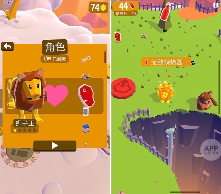 游戏的模式十分简单,通过滑动使角色「吃」到相应的物品和金币,同时躲避开各种动物的攻击即可。非常适合搭车等空隙时间玩,但也非常容易坐过站,因为我就试过。