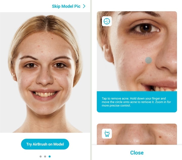 取名自艺术喷枪,Airbrush 也是少数的「只专注做一件事,并将其做到极致」这一类。为了能让零基础用户轻松掌握微调技术,Airbrush 自备了直观得不像话的 Demo Photo。比如点击底部「BLEMISH」后,软件会提示用户观看操作示范。看过之后,纵使小白们都会立马明白此操作可「去瑕疵」。