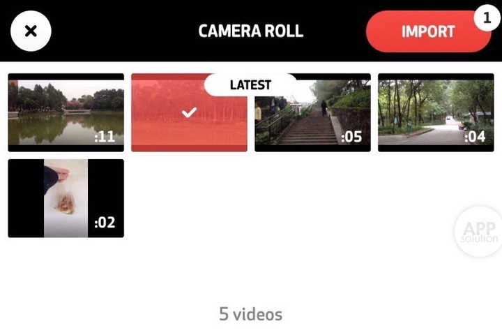 尽管被称为「Camera + Vimeo」,但 Cameo 却并不支持调用摄像头,因此我们只能导入之前已拍摄的一段或多段视频。导入视频时,Cameo 会将最近拍摄的视频打上「latest」的标记以便于快速点选,非常体贴。
