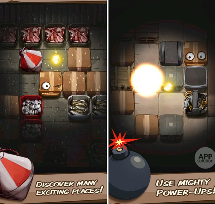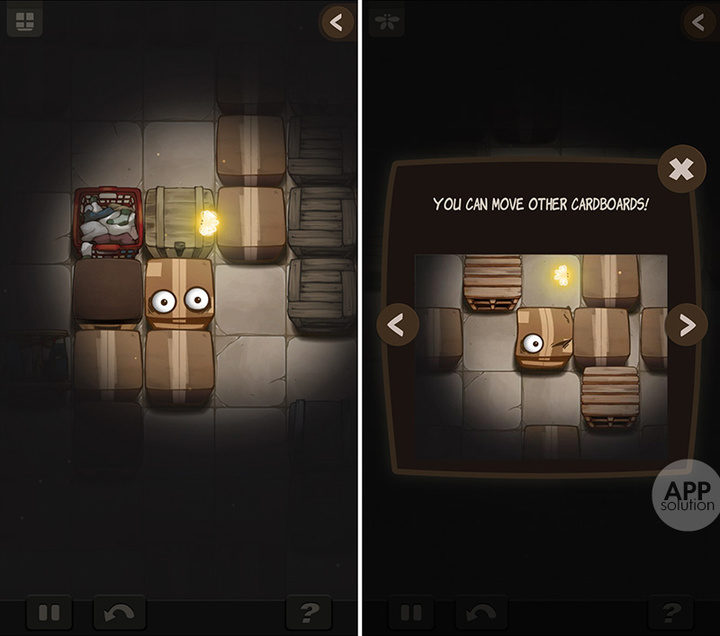 游戏操作非常简单,上下左右滑动平移小纸箱,而与经典推箱子不同的是在这里你可以同时推位于一个方向的多个纸箱。游戏添加的黑暗效果让玩家只能看到一个屏幕的视野,如果要达到逃出迷宫的目的就一定要召唤萤火虫啦。