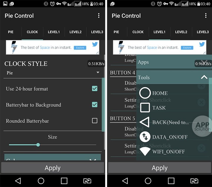 Pie Control 是 Android 上的一款手势控制 App,你可以通过简单的手势动作从屏幕侧边呼出一个「Pie」形状的控制面板,轻松实现「返回」、「桌面」、「启动应用」等功能。