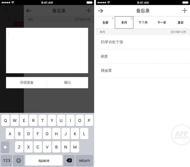 JUNE 也做了备忘录功能,你可以将本月、下个月甚至下一步要做什么记录下来,长按备忘内容可以将其拖拽到日历上成为日程安排,十分方便。