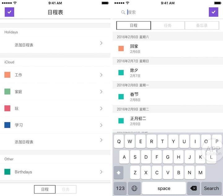 你可以在日程表里添加新的日历,搜索功能对于既有日程安排又有具体任务以及一堆重要时间节点的人来说真是非常便利。
