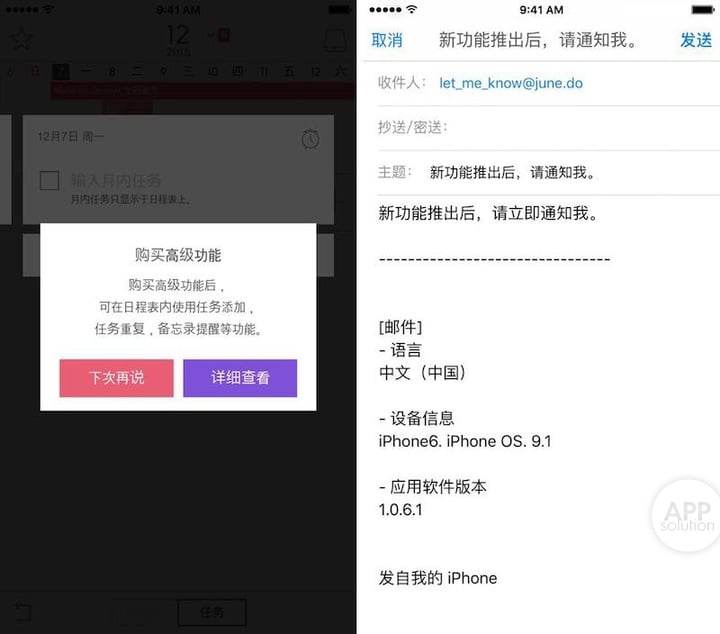 JUNE 的一些比较强大的高级功能,比如日程表内使用任务添加、备忘录提醒等功能,需要付费解锁。如果你愿意,也可以获取 JUNE 的新功能预告。