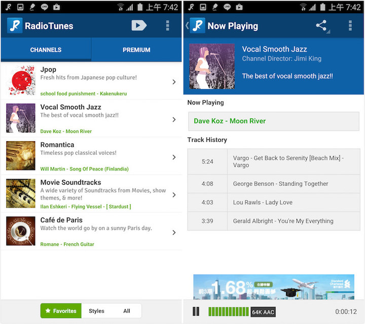 RadioTunes 也是一个老牌的听音乐 App,他的优点是有非常详尽的各种音乐类型的电台整理,只要打开某个音乐主题电台,就会有编辑推荐的源源不绝歌曲,而且通常都很好听。