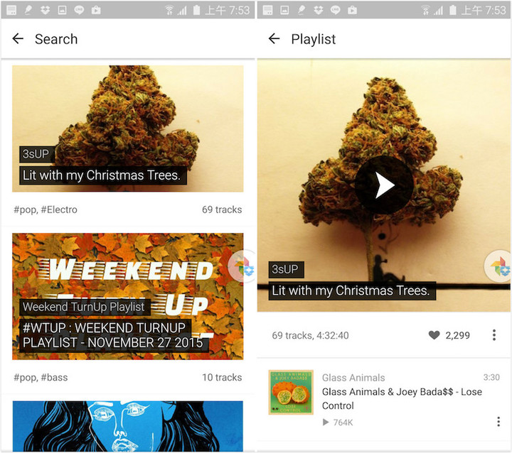 SoundCloud 这个音乐服务的利用方式也可以类似 8Tracks,只要输入你想像中想听音乐的关键字,就可以找到一些相关歌曲清单,直接点击就能播放。