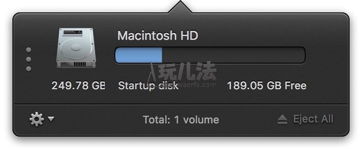老板的 CMD 功能单一,只有磁盘弹出功能,下面我们进正题,看看 2 代。哇,真是「矮锉穷」一夜变身「高富帅」,界面讨人喜爱,就连 Menubar 图标也换新,而且 Menubar 弹出的操作菜单也能随 Menubar Dark Mode 一起自动切换成 Dark Theme: