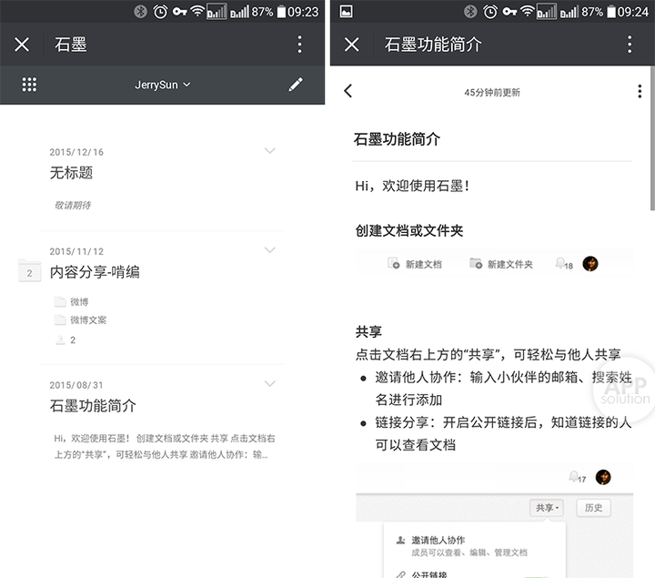 目前石墨推出了 iOS 的客户端,然而 Android 用户却只能苦逼地打开网页版了。