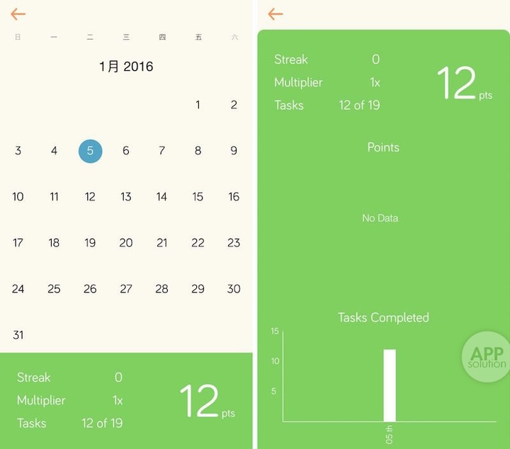 在日历界面中,你可以查看任务完成占比和获得的分数,分数在这里更多的是一种象征性的激励。在分数破百的时候回头看看自己做了哪些事,也是一件挺有意义的事情。