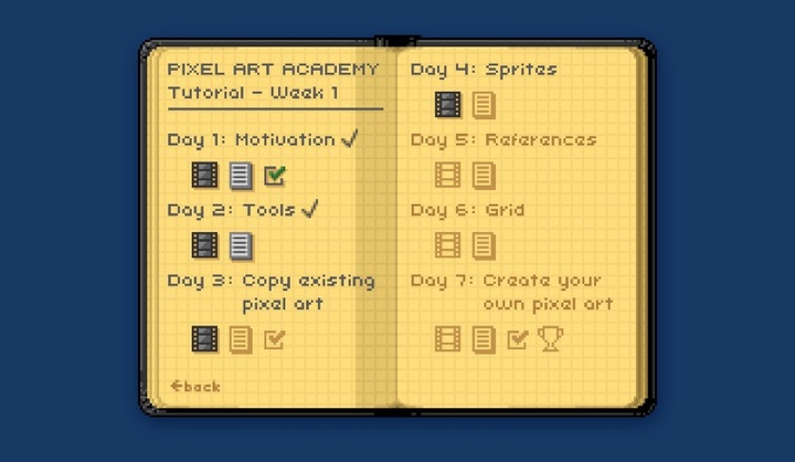 玩家扮演的学员,会接到 NPC 老师的学习任务,例如读个资料、看个视频,听上去像是游戏版 iTunes U。难以判断此项目游戏性多高,但它肯定让学习像素艺术足够有趣。