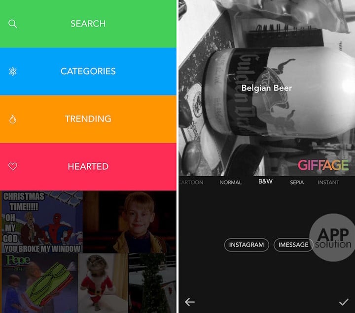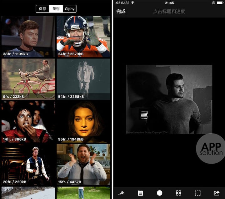 与大部分相机类应用不同,5SecondsApp 不仅内置了 Giphy 的图片库,还可以让你轻松使用已有照片或视频制作 GIF。