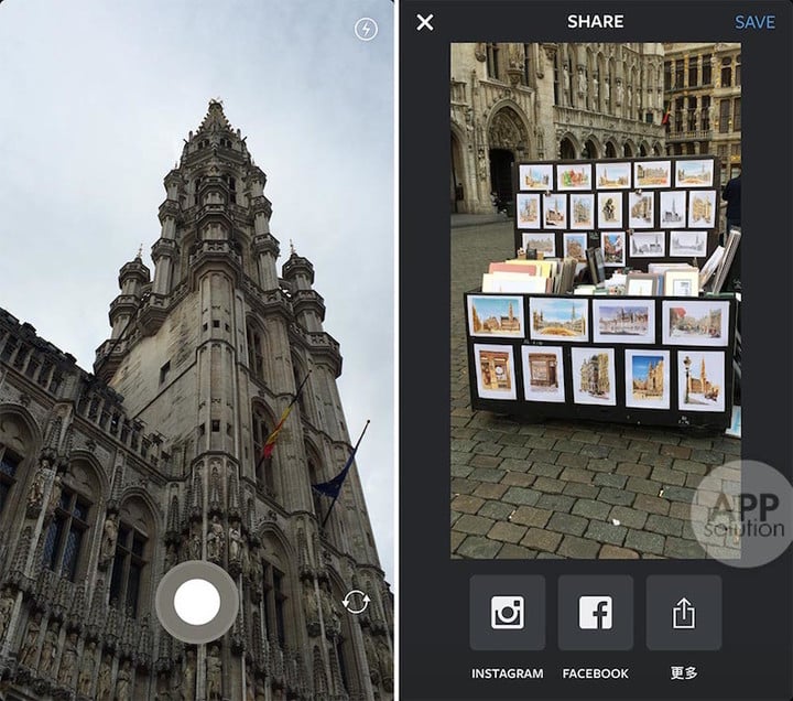 Instagram 官方出品魔性循环小短片应用,界面与 DSCO 类似只有 3 个选项:右上方开启闪光灯,右下方切换前后摄像头。