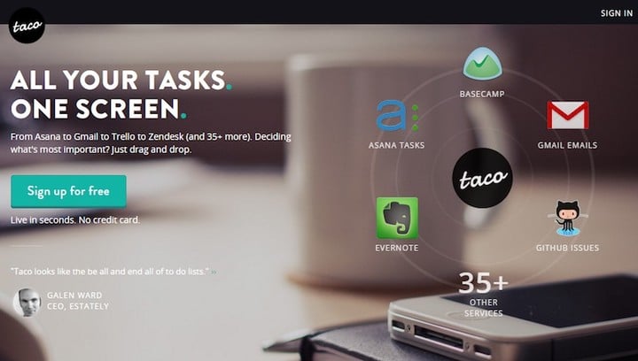 Taco 是一个免费的云端任务管理服务,但他不是又给我们增加一个新的任务清单,而是要帮我们同时「整合来自 40 多种不同云端服务的任务」,在 Taco 提供的统一的待办清单里集中管理,从分散的任务里挑出每天最重要的几件事,在一份整合清单来重新排序与执行。