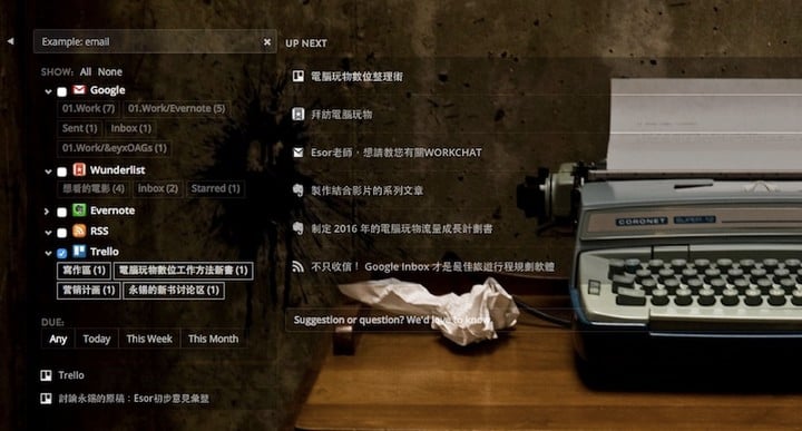 或许你工作上曾有过这样的困扰:有些任务在 Gmail 里透过邮件接收,有些任务用自己习惯的 Evernote 处理,可是有些任务因为团队合作需要而使用 Trello,或者使用 Wunderlist 等不同服务来协同合作,结果,造成一个人同时在「多个云端服务上」拥有任务。