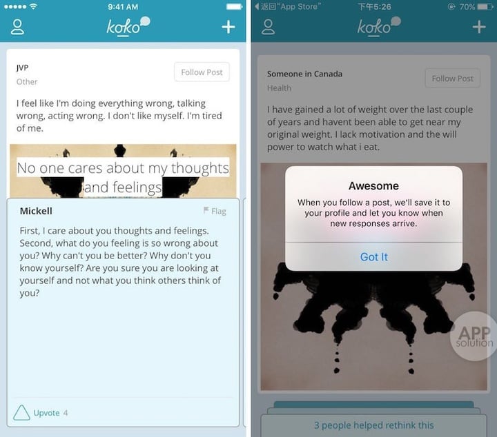 Koko,这个纯粹陌生人倾诉社区的出现,为这个令人纠结的问题的解决,提供了一种思路。