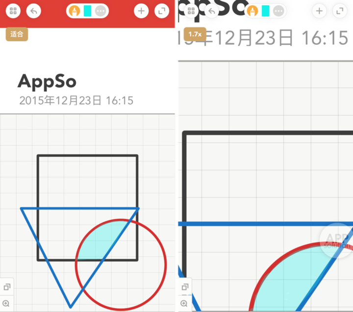 如果仅有这些,Whink 也不过是个「还不错」的笔记应用。真正让它鹤立鸡群的是其绘制「形状」的功能。它会将你手绘的基本形状转换为标准的直线、圆、三角等,进行颜色填充时缩放页面大小还可以更精准地完成绘图。对于手残党,这无疑是能将笔记水准从量变提升到质变的功能。
