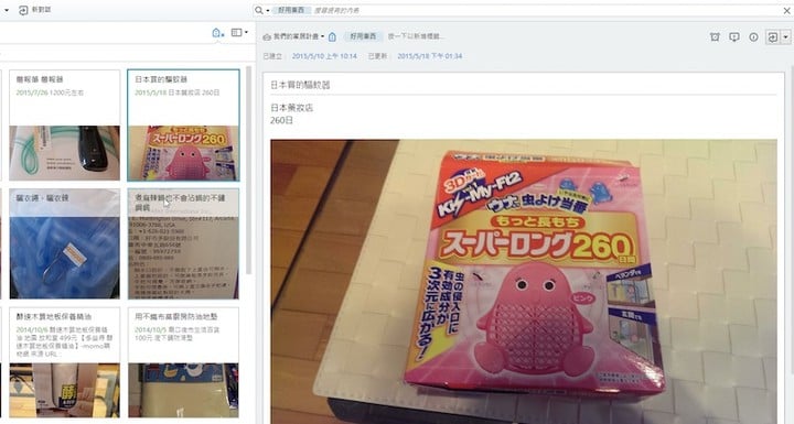 然后我们会把用过后觉得真的有用的东西拍照记在 Evernote 笔记,我会加上一个「好用物品」的标签。