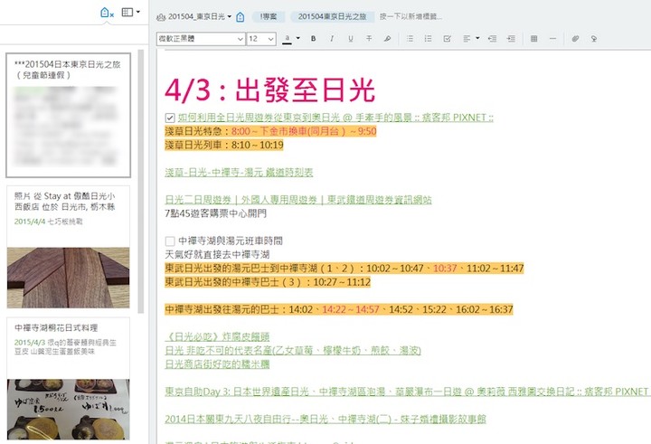 从收集资料、拟定行程、购物清单到收拾行李,每一次旅行我和老婆都会在 Evernote 中一起共同计划,这个过程本身,就让我们对每一次旅行的回忆更深刻,因为从准备过程就是一起行动的。