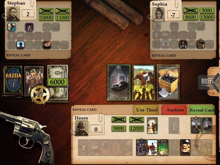 要知道地下拍卖会也不是一帆风顺的,期间会有讨厌的警察前来搅局。一旦警察卡被翻出来,拍卖会将立即进入竞拍环节,累积到7张警察卡的话本局游戏也就结束了。