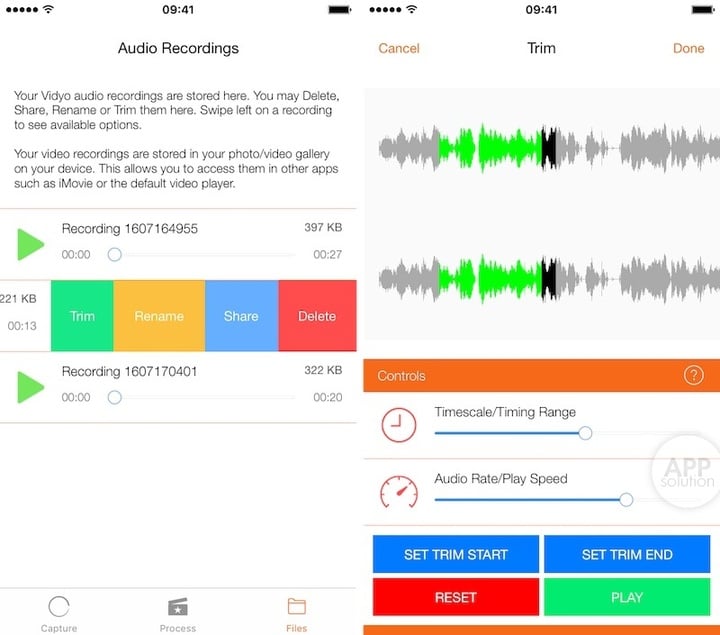 音频文件可以单独在 Files 里收听和编辑。除了调节音放频速和时长,你也可以做音频片段的截取。音频文件可以单独分享出去。