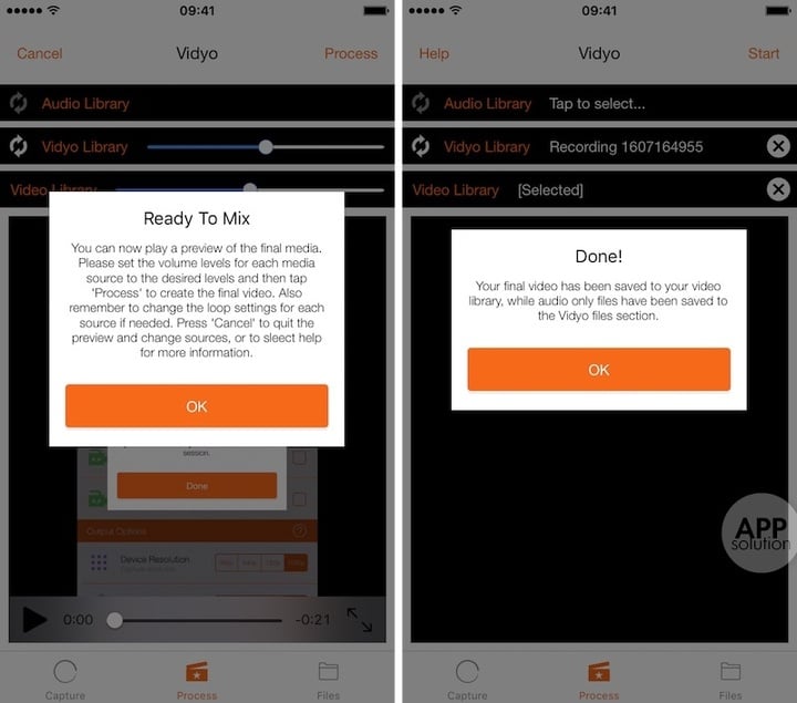 录制完毕后,你会在相册中找到无声视频文件,需要混入音频则要在 Process 中进行视、音频的 Mix。