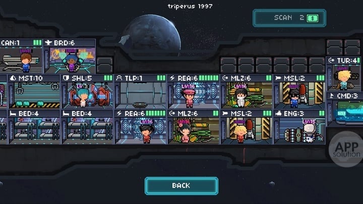 Pixel Starships 也许致敬了这个特性,不过人物只能简单升级。游戏中每个人物属性各异,注定他们适合在不同岗位工作,例如快速维修船舱,或者驾船躲避飞弹。