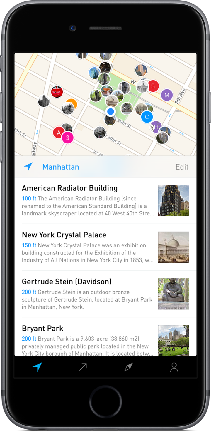 Curiosity 就像是一本旅行者口袋里的当地旅行参考手册,每当你到了一个陌生城市或地区时,App 可以通过定位你的真实地理位置,在地图上展示并推送周边被维基百科收录的知识点,包括地名、建筑、历史事件等等。或者你也可以足不出户,直接将 Location 定位到其他国家城市进行知识了解,非常方便。