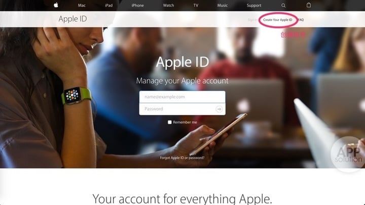 3. 在跳转之后的页面中点击右上角的「Create Your Apple ID」创建新的 Apple ID。
