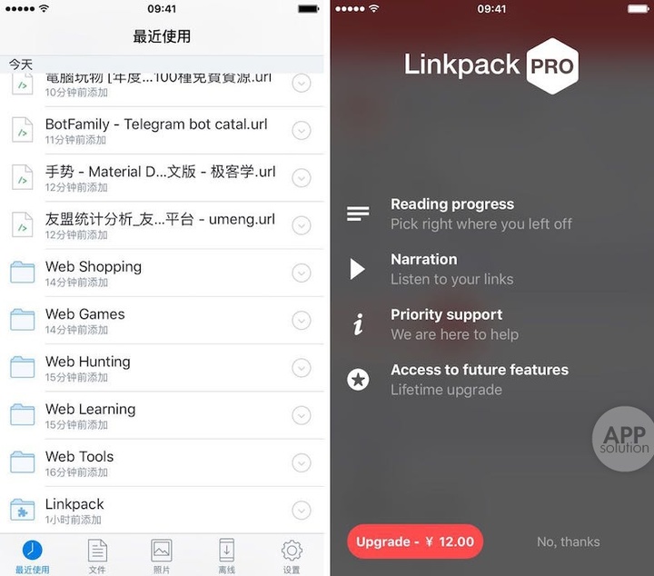 如上面所说,你在 Linkpack 收藏的网页资源会同步备份到 Dropbox,诸如拾取阅读进度等高级功能,可以通过支付 12 元进行升级来获得。