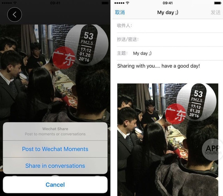 而且在适当的场景下,通过分享带有这些信息的照片,能够给关心自己的人一个简单的交代。这也是开发者 —— 一对高材夫妇最初想要解决的问题。