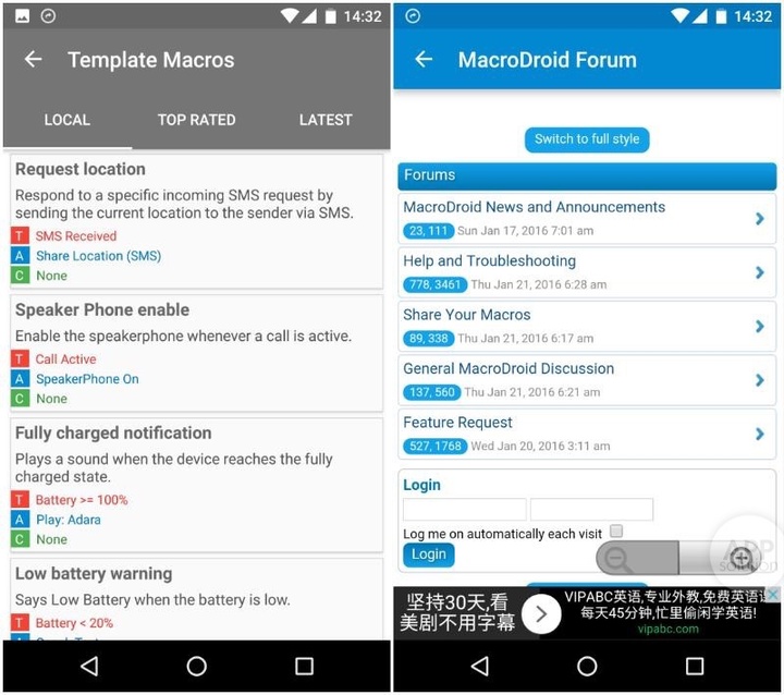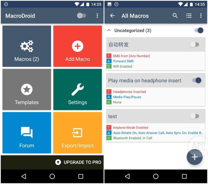 MacroDroid 适用于 Android 4.0+ 的设备,大小 13 MB,免费有内购。