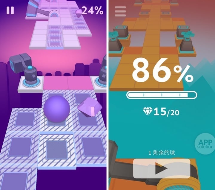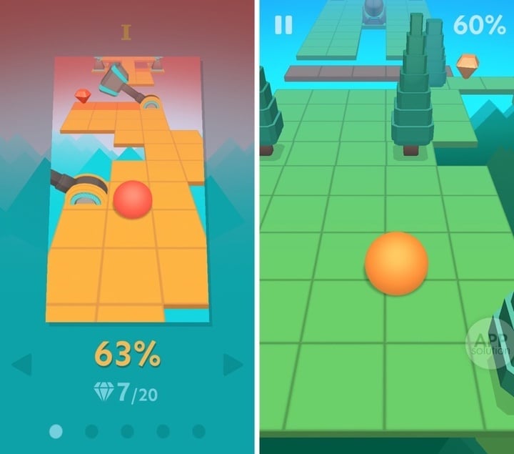 滚动的天空是一款跑酷游戏,玩家通过左右滑动屏幕,来控制小球躲避机关。游戏建模看似简单,但关卡设计精巧,难度偏高。