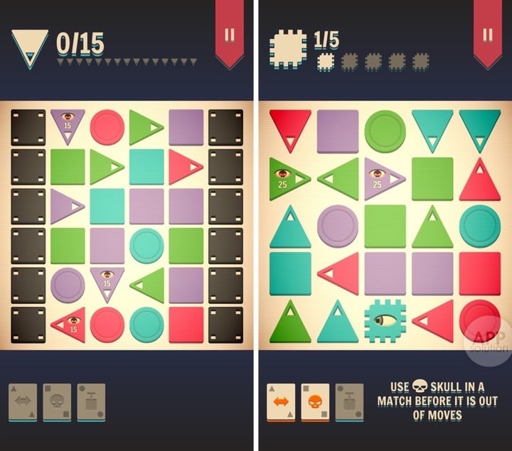 游戏的另一个亮点,是功能卡片系统,消除特定形状的碎片,便可以积累功能卡片辅助通关,既为游戏添彩又不失衡。