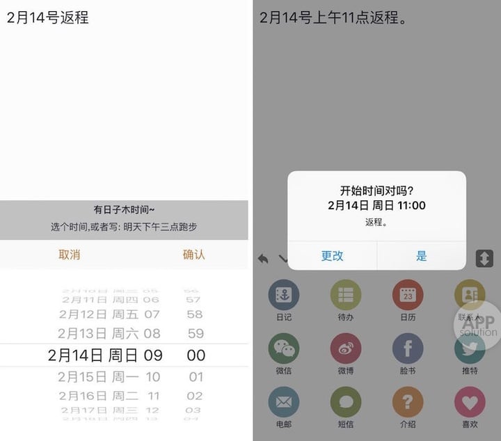 Pendo 支持自然语言,除了输入「db」或「todo」可以直接创建 Todo List 之外,还能够根据你输入的具体信息来优化结果反馈。比如你将时间精确到当日几点,则 Pendo 就会为你跳过时间点的选择。