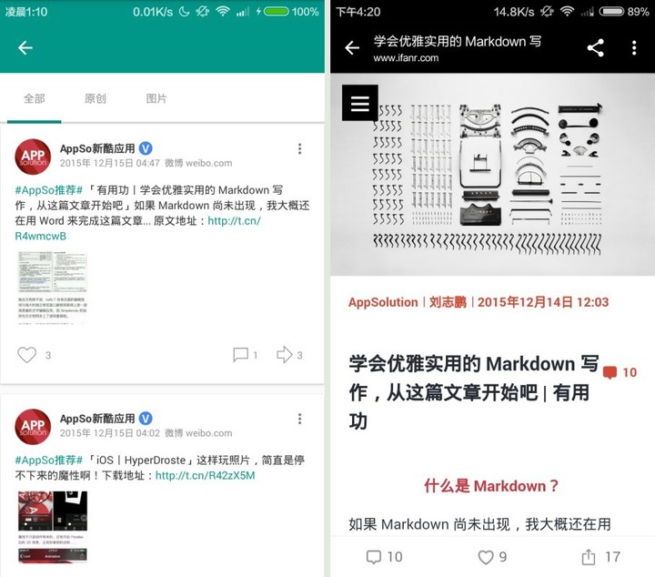- 在应用中内置一个浏览器 (例如:Smooth 微博客户端)