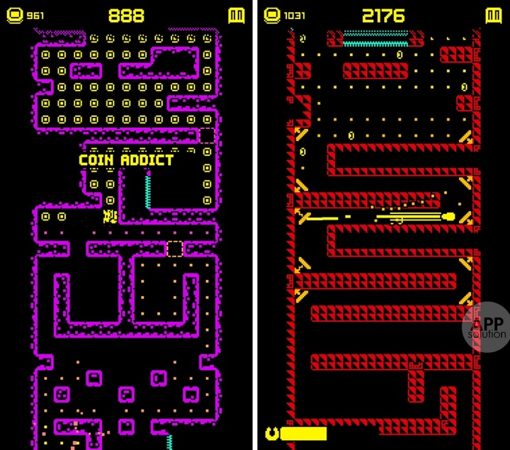 Tomb of the Mask 不乏道具与人物解锁元素,但游戏性全在迷宫机关上。复古的像素画面音效,配合出色的动态效果,游戏的视听冲击快感十足。
