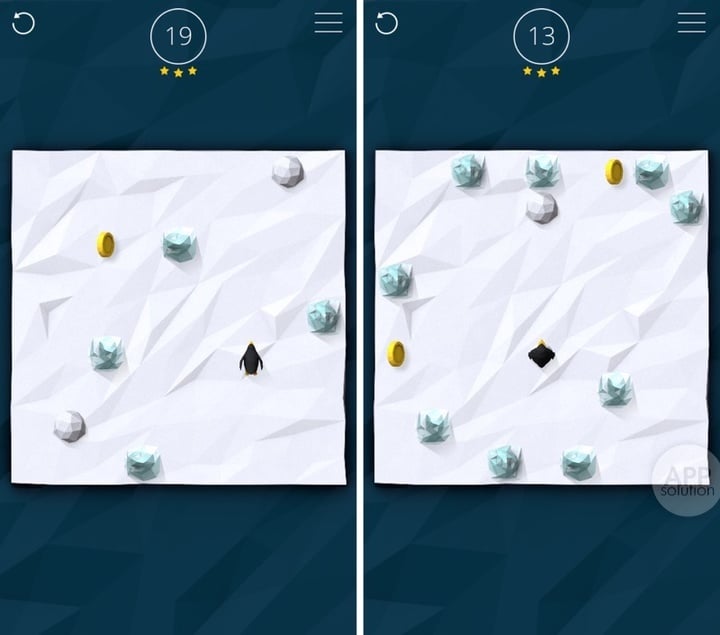 高难谜题、玩法简单,画面简约的 Slide On Ice 符合益智游戏的基本特征。游戏中的企鹅只能依靠障碍物停留,玩家需要想方设法让直行的企鹅集齐金币通关。
